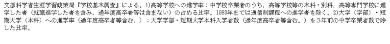 | 年度 | 高等学校への進学率1) | 短期大学への進学率2) | 大学への進学率2) | |||||||||
