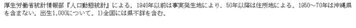 | 都道府県 | 1920年 | 1940年 | 1950年1) | 1960年1) | 1970年1) | 1980年1) | 1990年1) | 2000年1) | 2005年1) | ||
